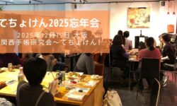 てちょけん!2025年忘年会 12月15日開催 2025年10月15日 2025年10月15日オフ会・イベント告知 2013年12月15日。 てちょけんは日本手帖の会西日本支部として6名で産声を上げました。 今年は初… Continue reading